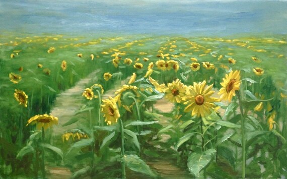 Sunflower Fields 15 X 24 Original Oil Painting On Board Etsy Ireland